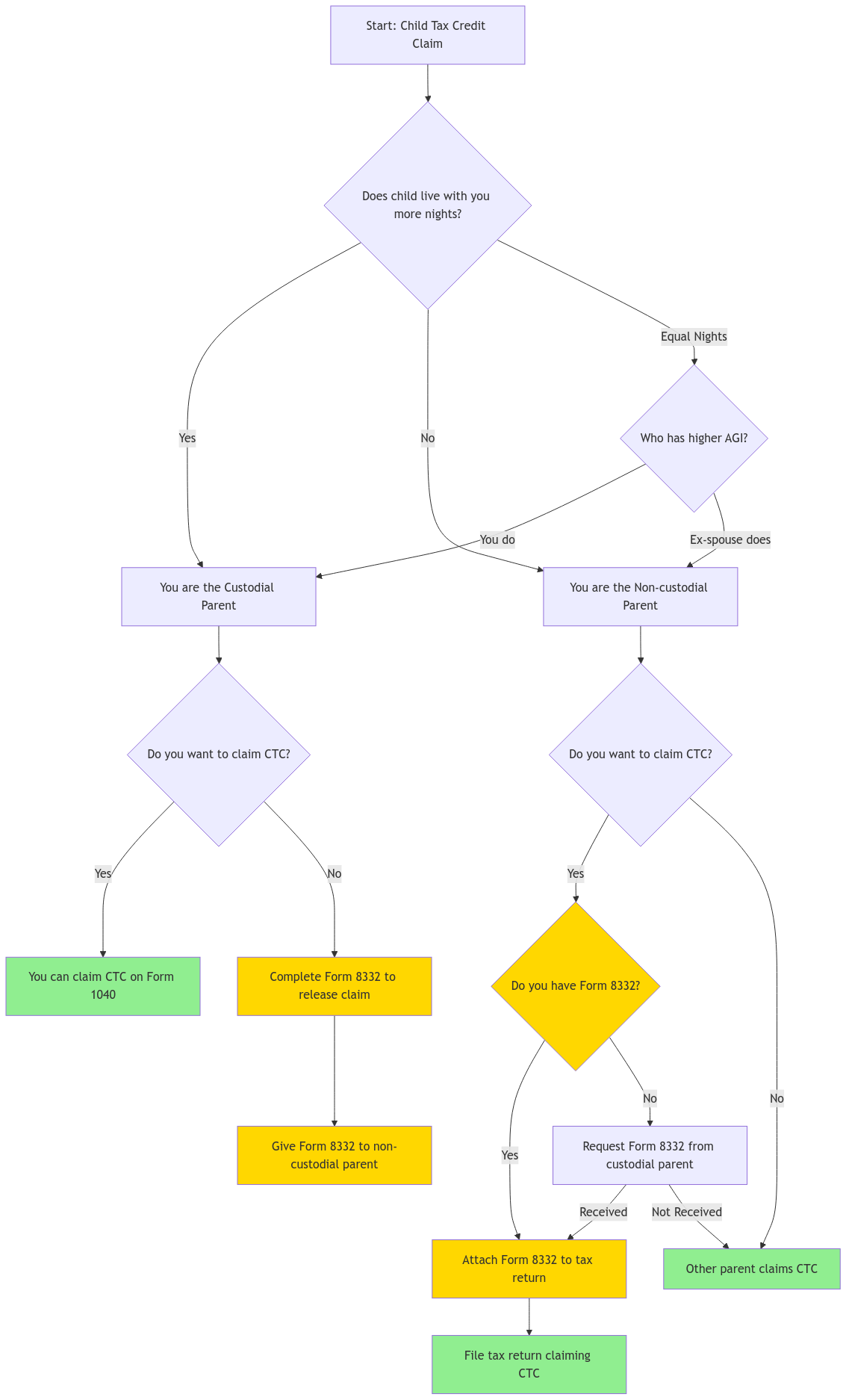 A flowchart showing the steps involved in claiming the Child Tax Credit for divorced or separated parents
