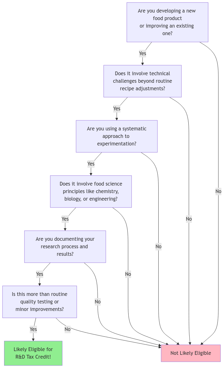 Not sure if your food innovation qualifies? Use this flowchart to do a quick assessment of your R&D activities: