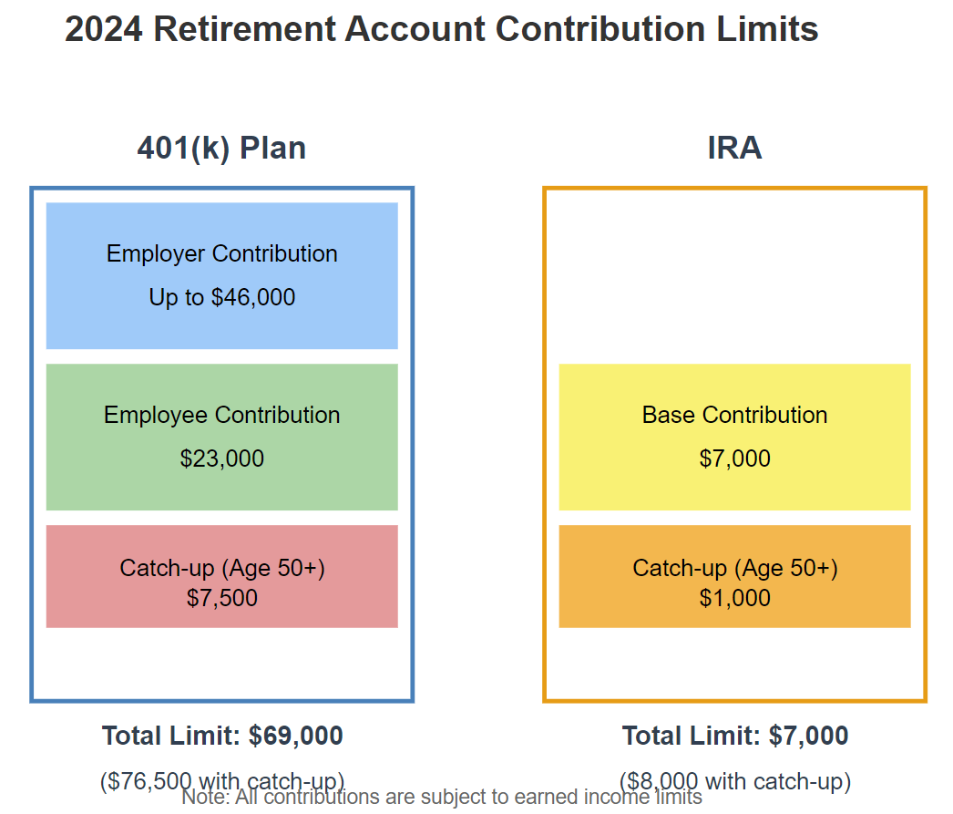 The contribution limits for 401(k) plans and IRAs are independent of each other. If you have enough earned income, you can contribute the maximum to both types of accounts. This allows for greater flexibility in your retirement savings strategy.